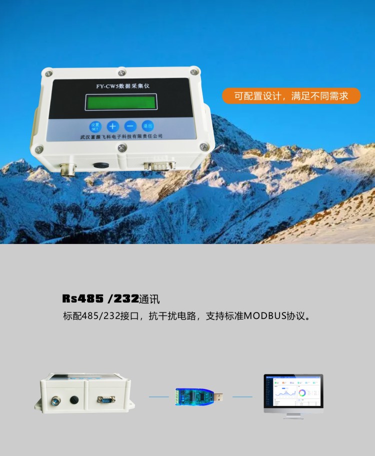 FY-CW5型二通道氣象參數(shù)采集儀是一款集氣象數(shù)據(jù)采集、存儲、傳輸和管理于一體的氣象數(shù)據(jù)采集儀器。本儀器具有2路數(shù)據(jù)采集接口,可接入風(fēng)速、風(fēng)向、溫度、相對濕度、土溫、土濕、雨量、氣壓、蒸發(fā)、輻射等氣象氣象傳感器,氣象參數(shù)可根據(jù)需要進(jìn)行配置;人性化的人機(jī)界面接口操作簡單可靠;內(nèi)置大容量存儲器可存儲一年以上的氣象數(shù)據(jù),并具有掉電數(shù)據(jù)保存功能,還可定制U盤外部數(shù)據(jù)存儲器,實(shí)現(xiàn)數(shù)據(jù)的海量存儲;具備RS232、RS485等多種通訊接口實(shí)現(xiàn)數(shù)據(jù)遠(yuǎn)傳,開放式通訊協(xié)議,方便用戶實(shí)現(xiàn)系統(tǒng)集成或二次開發(fā)。