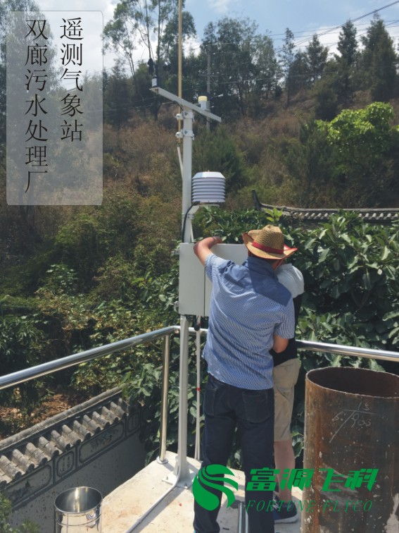 武漢富源飛科公司為雙廊污水處理廠建成的遙感氣象站包含環境傳感監測、地理位置信息監測、無線通訊、數據共享服務器、終端平臺五部分。環境傳感器可對現場的風速、風向、溫度、濕度、氣壓、輻射、雨量、二氧化碳等生態因子進行實時在線監測。地理位置信息由GPS模塊測量,可獲取現場經緯度及海拔高度。RTU數據終端對數據進行分析處理后,通過GPRS無線傳輸網絡,以1分鐘每次的頻率將數據實時傳輸到遠程服務器軟件平臺,軟件可對數據進行分析統計。用戶可通過電腦、平板或其他手持終端登錄服務器發布的地址產看氣象站實時及歷史數據。