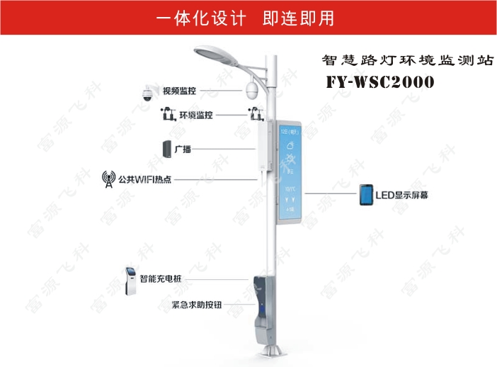 FY-WSC2000智慧路燈環(huán)境監(jiān)測(cè)站可集成在智慧照明路燈燈桿,通過(guò)智慧路燈的網(wǎng)格化布局,實(shí)現(xiàn)對(duì)城市環(huán)境的實(shí)時(shí)在線監(jiān)測(cè)。常規(guī)監(jiān)測(cè)數(shù)據(jù)包括風(fēng)速、風(fēng)向、溫度、濕度、氣壓、光照度、紫外、環(huán)境噪聲、PM2.5、PM10等,監(jiān)測(cè)要素可根據(jù)需要進(jìn)行選配。