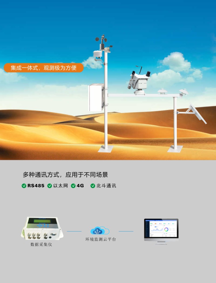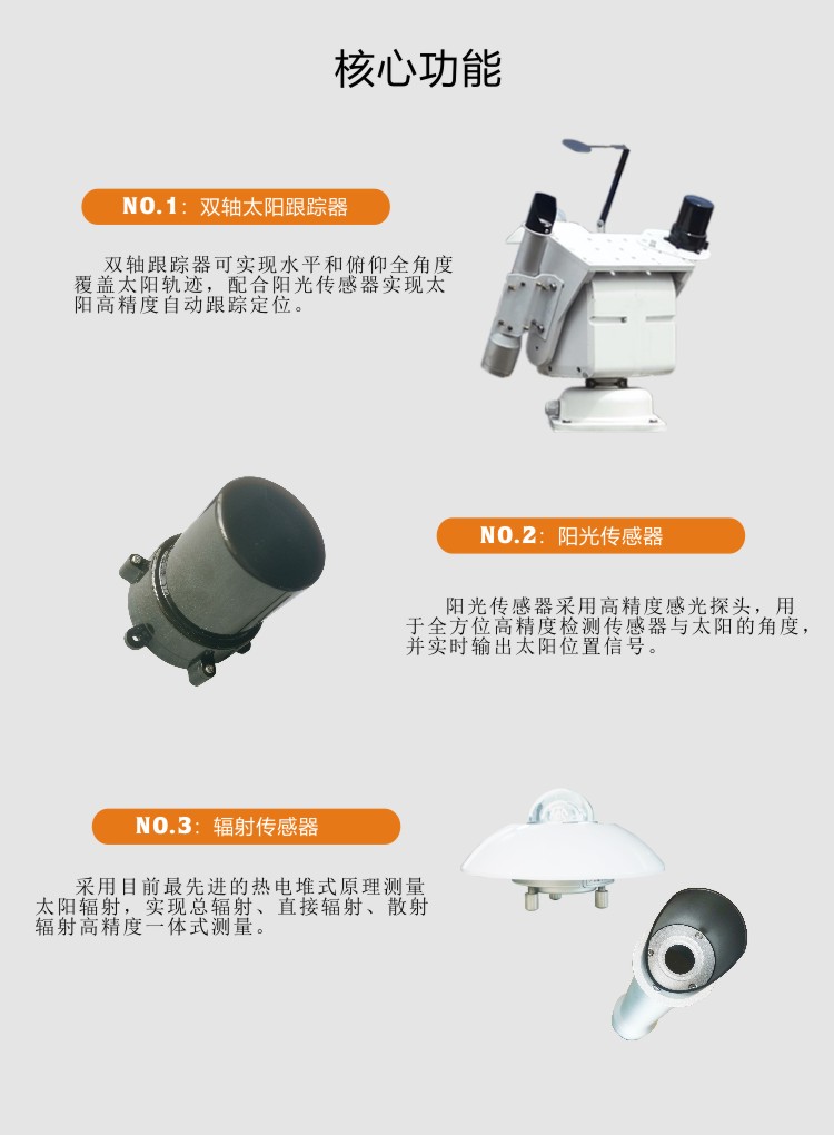 FY-SQ200型光伏電站環(huán)境監(jiān)測系統(tǒng)可觀測的環(huán)境輻射要素有:環(huán)境溫度、濕度、氣壓、組件溫度、風(fēng)速、風(fēng)向、傾斜總輻射、日照時數(shù)、水平總輻射、太陽直接輻射、太陽散射輻射等指標(biāo)。具有性能穩(wěn)定,檢測精度高,完全自動化監(jiān)測等特點,可滿足光伏電站環(huán)境氣象監(jiān)測、太陽輻射監(jiān)測等相關(guān)要求。