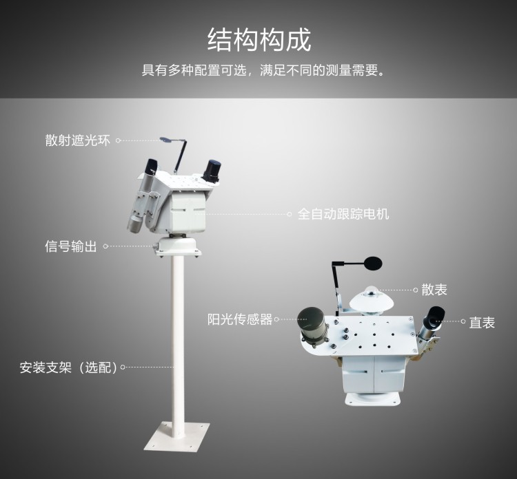●一體式測量太陽總輻射,直接輻射,散射輻射等;
