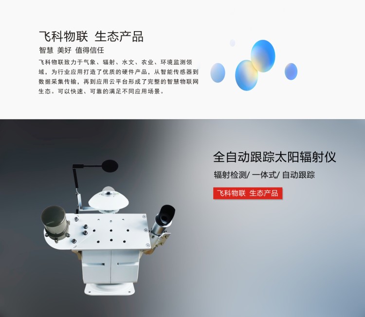 FY-AS2全自動跟蹤太陽輻射儀用于自動測量太陽直接輻射以及散射輻射。儀器采用高靈敏度陽光傳感器以及自動跟蹤裝置,可自動實時精確跟蹤太陽方位,實現太陽直接輻射值以及散射輻射的同步測量。本傳感器可應用于氣象探測、太陽能利用、農業、建筑物理研究、生態監測考察部門。