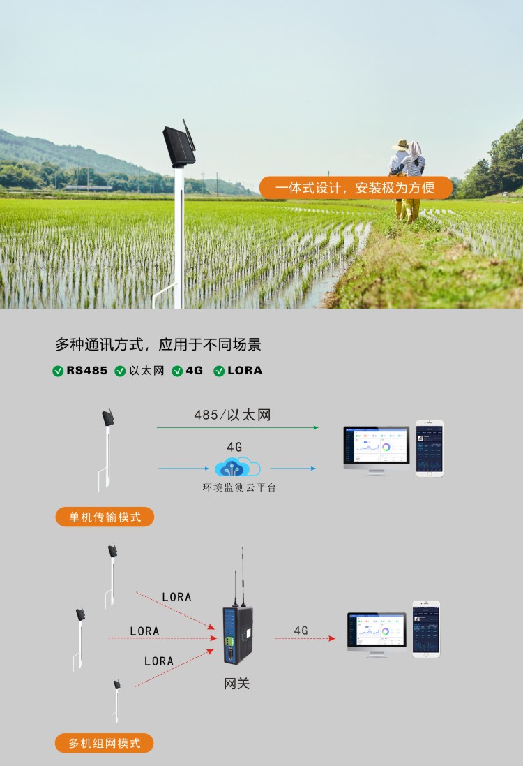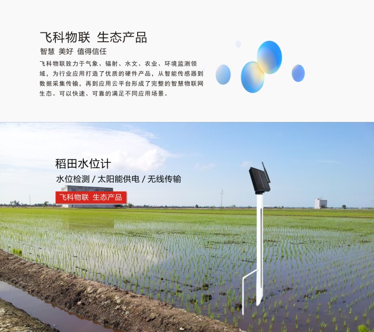 FY-WT500稻田水位計專門用于對稻田水位實時監(jiān)測與管理。借助傳感器技術、數(shù)據(jù)分析技術以及通信系統(tǒng)的有機整合,能夠精確測定稻田的水位數(shù)據(jù),進而達成水資源利用的最優(yōu)化以及農田管理效能的提升,為現(xiàn)代化農業(yè)生產(chǎn)中的稻田用水管控提供了極為精準且高效的解決方案。