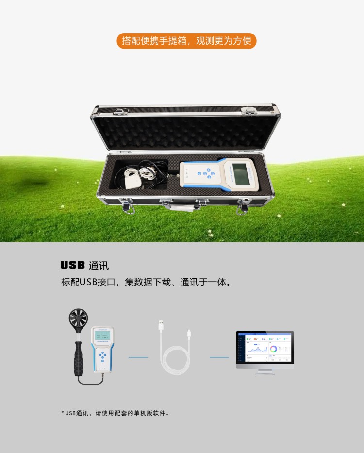 FY-TH210葉輪風(fēng)速檢測(cè)儀是一款攜帶方便,操作簡(jiǎn)單的便攜式環(huán)境檢測(cè)設(shè)備。低功耗大屏液晶時(shí)顯示風(fēng)速值,對(duì)微風(fēng)反應(yīng)靈敏,測(cè)量范圍寬,可滿足各種環(huán)境風(fēng)速檢測(cè)要求。內(nèi)置大容量FLASH存儲(chǔ)芯片可存儲(chǔ)9萬條歷史數(shù)據(jù);通用USB通訊接口,使用配套的USB線纜即可將數(shù)據(jù)下載到電腦,也可通過4G將數(shù)據(jù)傳輸至云平臺(tái),方便用戶對(duì)氣象數(shù)據(jù)的進(jìn)一步處理分析。