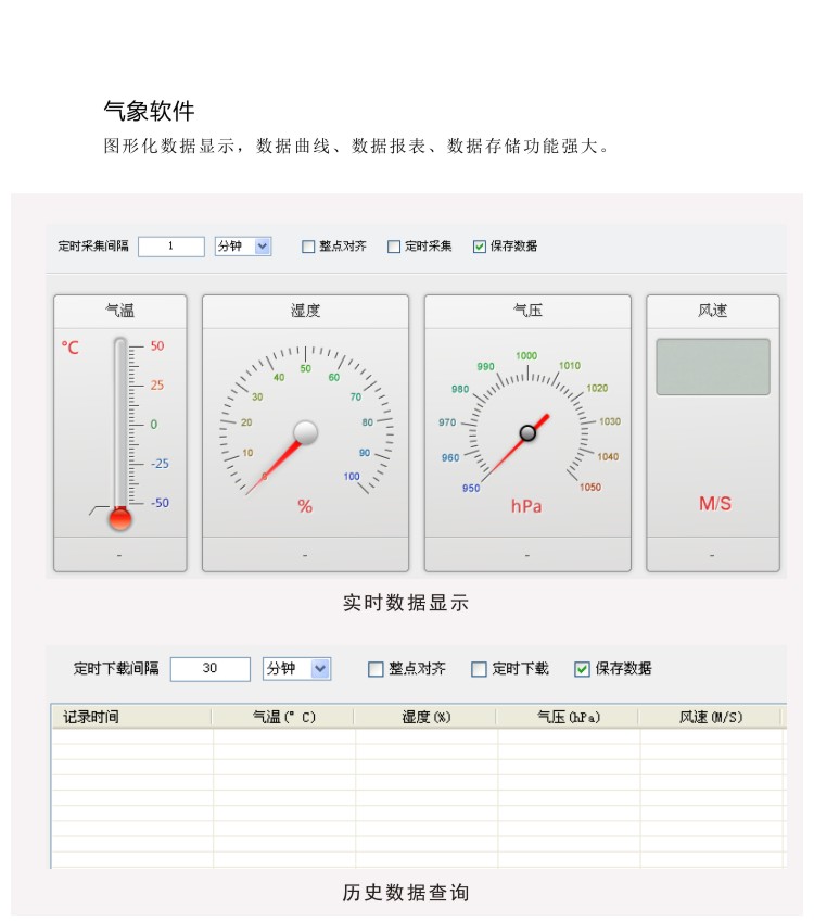 ●大容量數(shù)據(jù)存儲(chǔ),最多可存儲(chǔ)90000條氣象數(shù)據(jù)(數(shù)據(jù)記錄間隔可在1~240分鐘之間設(shè)置);