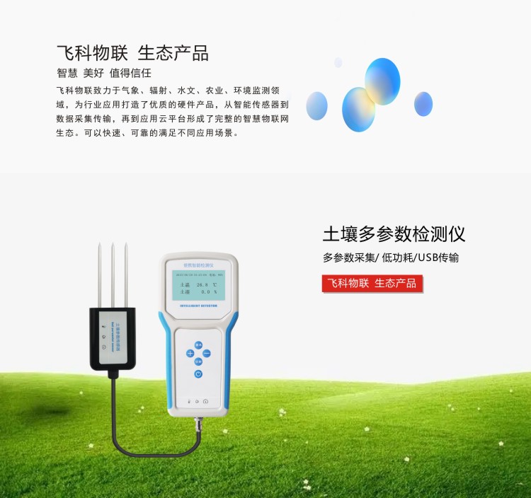 FY-TH100土壤多參數檢測儀是一款攜帶方便,操作簡單的便攜式土壤檢測設備。低功耗大屏液晶,可同時顯示土壤溫度、土壤水分、土壤鹽分、土壤電導率、PH等,內置大容量FLASH存儲芯片可存儲9萬條歷史數據;通用USB通訊接口,使用配套的USB線纜即可將數據下載到電腦,也可通過4G將數據傳輸至云平臺,方便用戶對氣象數據的進一步處理分析。